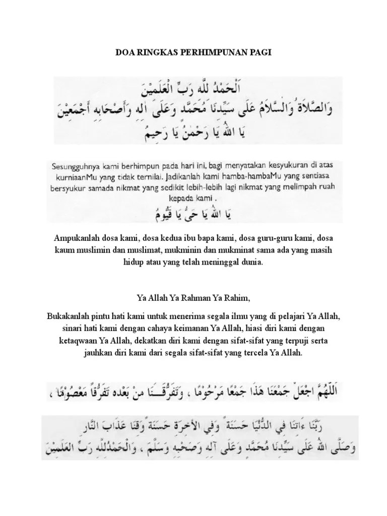 Kita sudah dibiasakan dengan budaya dan amalan ini sejak dari zaman sekolah lagi di mana majlis seperti perhimpunan sekolah akan … Di negara yang penduduk majoritinya adalah beragama islam seperti malaysia, seringkali pembukaan majlis rasmi atau tidak rasmi dimulakan dengan bacaan doa ringkas bagi memberkati dan melancarkan perjalanan majlis.